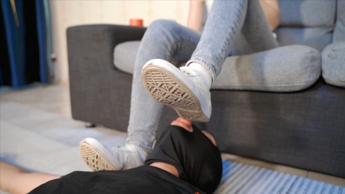 【00后小彤】白裙脏匡威玩18岁小M,踩踏舔鞋底