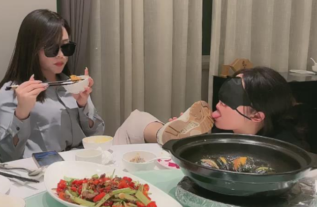 【伊晨】包房玩狗舔脏靴底狗喂食裸足互舔