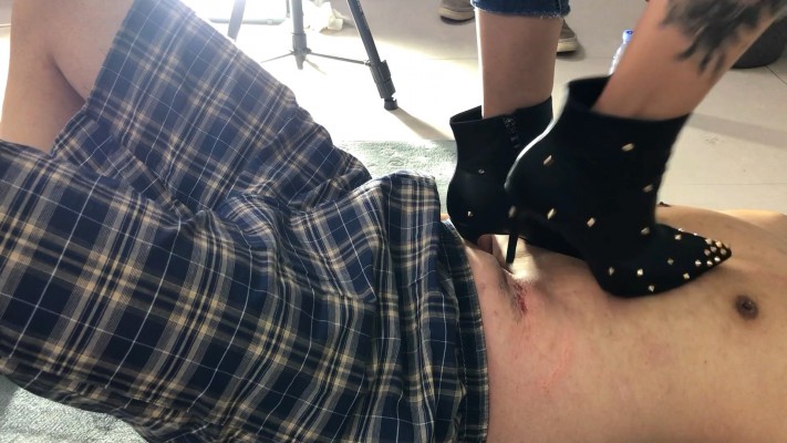 坏女孩依依和小鱼高跟踢踩